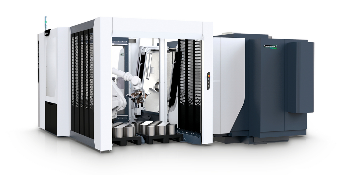 On a footprint of only 12.5 m², the new Robo2Go MAX from DMG MORI allows for highly flexible automation of large lathes and turn-mill centers.