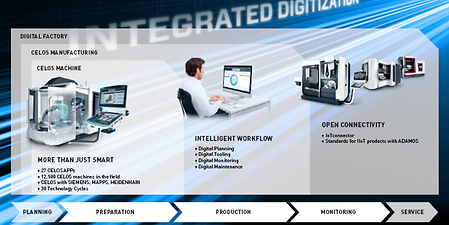 - CELOS Xperience: Application platform for easy operation, increased spindle hours & energy efficiency